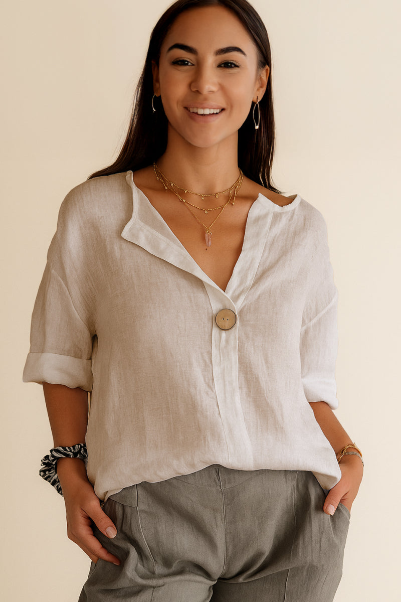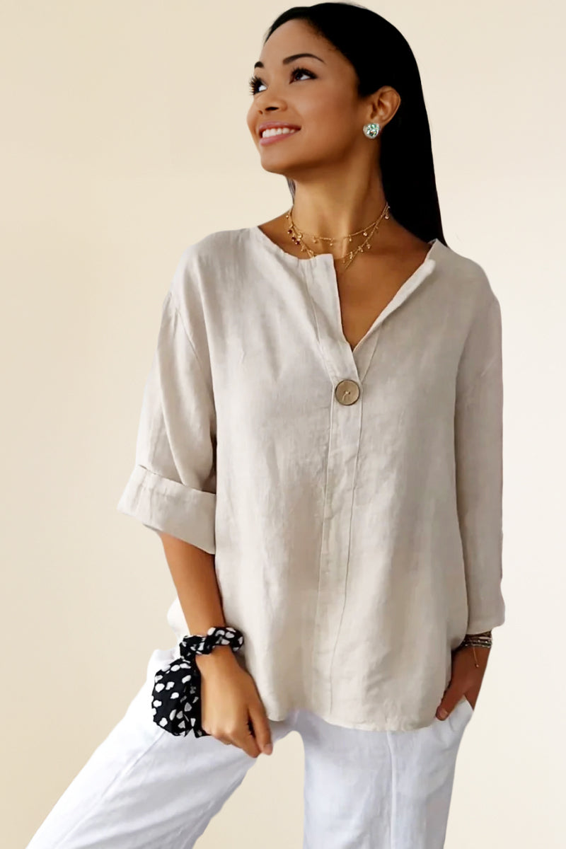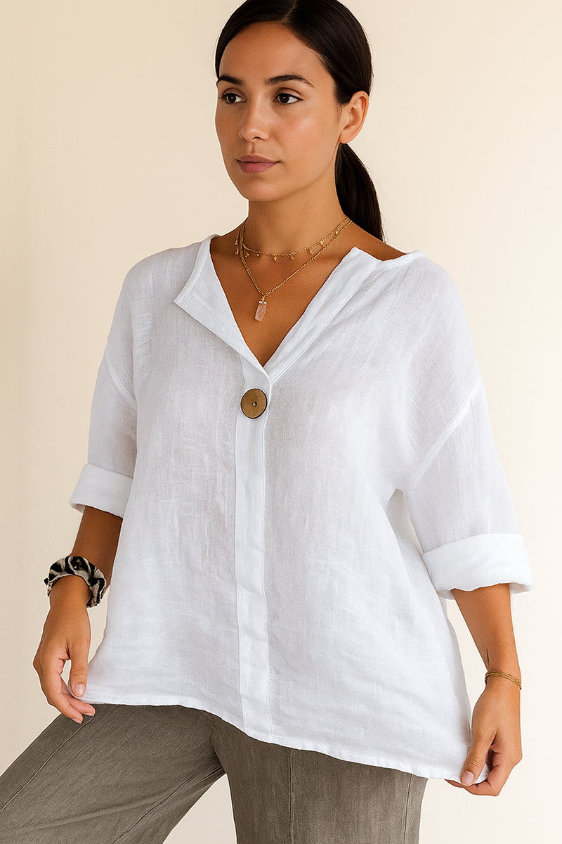 Pure Linen Age-Defying Button Detail Shirt